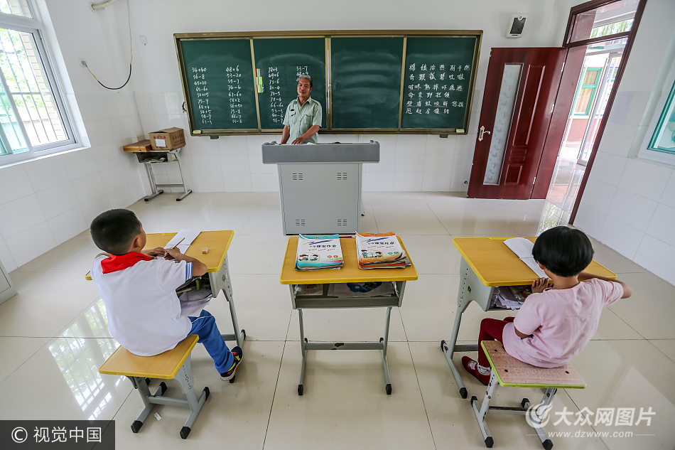 2017年5月31日,濟南,在南部山區的上羅伽村,有一所“袖珍小學”,這里只有一年級和二年級,每個年級只有一個班,而所有學生加起來只有6人,再加上3位老師,就組成了一個小學校。附近11個自然村一、二年級的孩子都要來這里上學。從教34年的葉才興和從教28年的趙桂英是學校的2名主要任課教師,還有負責部分課程的校長崔殿厚,這3個人就是學校的全部教職工。學校半數學生是留守兒童,“六一”節當天最想父母陪成為大部分孩子們的愿望。