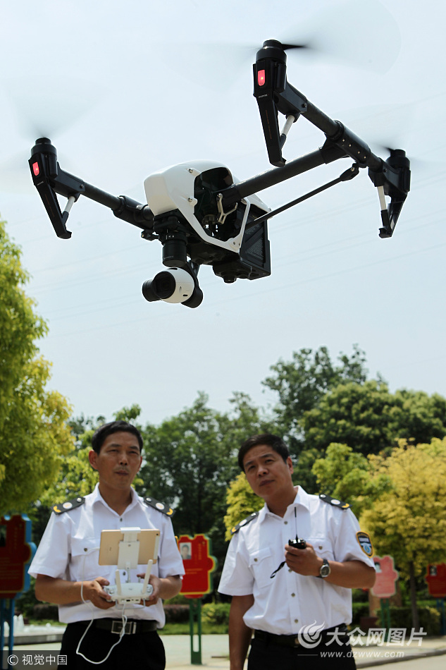 2015年6月7日,河南許昌高中考點外,無線電技術人員在調試無線電監測無人機對考場周圍的無線電電磁環境進行監控。