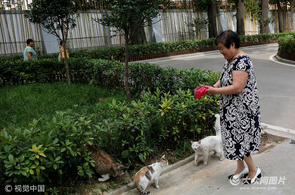 2017年6月15日,在西安一小區,73歲的姜老太每天早上8點到10點都要去附近菜市場幫人殺魚,取回魚鰓喂流浪貓。
