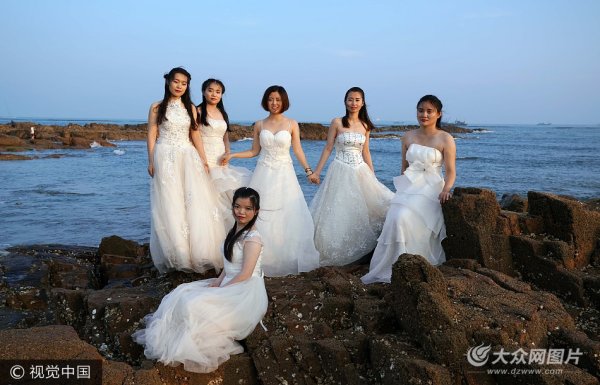 青島女大學生身著婚紗拍攝畢業紀念照