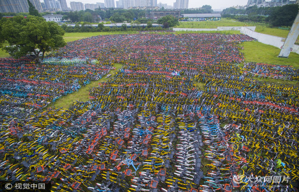 上萬輛共享單車被棄荒野 密密麻麻好似“亂葬崗”