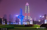 濟南第一高亮燈祝福建黨96周年和香港回歸20周年