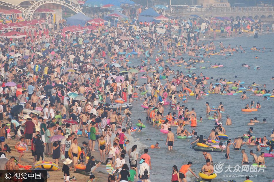 2017年7月12日,為農(nóng)歷“入伏”天氣,山東省青島市升至30℃,第一海水浴場迎來數(shù)萬游客“下餃子”避暑納涼。