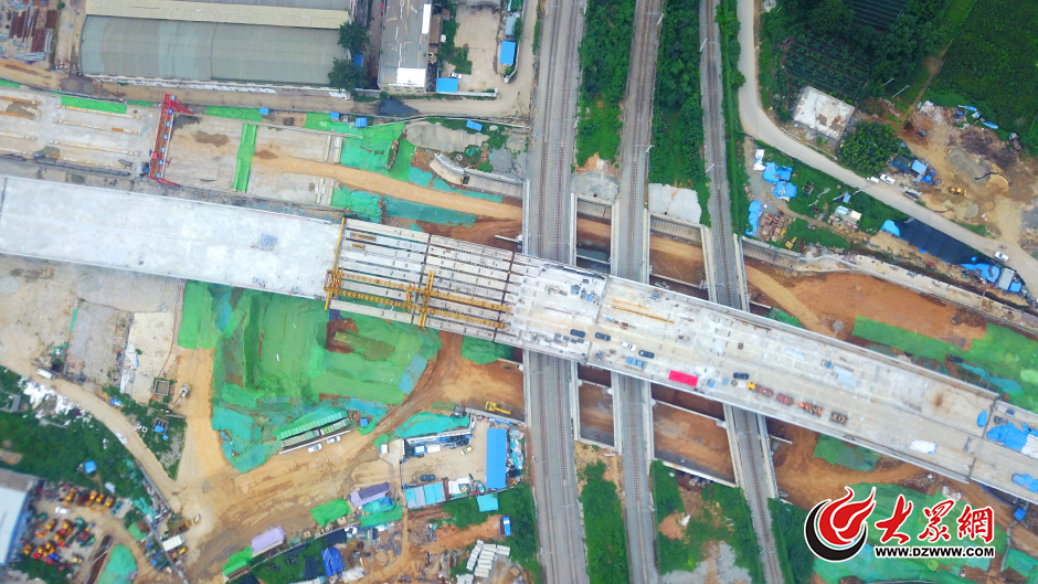 大眾網濟南8月2日訊 8月2日上午,大眾網記者來到濟南二環西路高架橋施工現場,隨著最后一片箱梁緩緩落在橋墩上,標志著由中鐵十局承建的二環西路高架橋南延穿越鐵路工程箱梁全部架設完成,二環西路高架橋南延順利合龍,濟南新建二環西高架橋距離開通又近了一步。(大眾網-山東24小時客戶端記者 王長坤 攝)