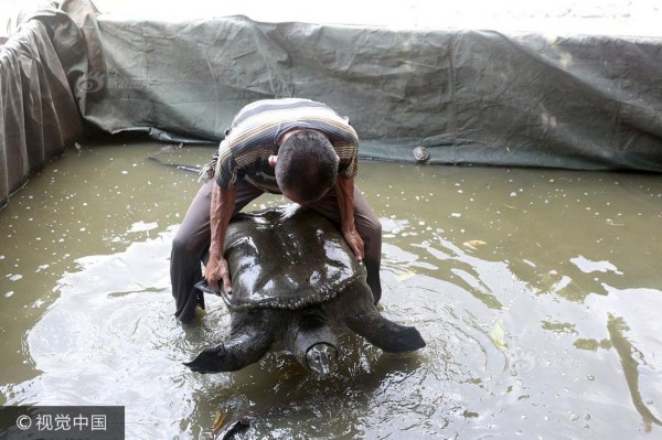放生池現神秘巨黿 1米多長百余斤重