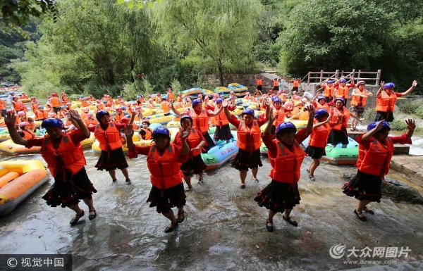 大媽組團漂流遭堵 水中跳廣場舞解悶