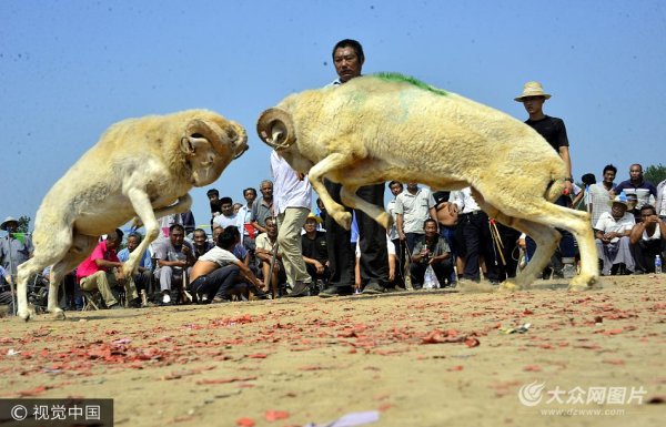 聊城舉行趣味斗羊大賽 場面震撼千人圍觀