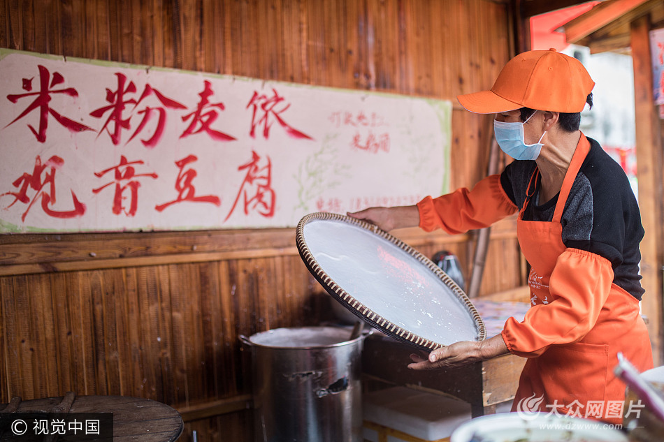 大眾網10月7日訊 這幾年,鄉村旅游興起,許多城里人樂忠于前往山村里游山玩水。浙江省浦江縣虞宅鄉新光村廿玖間里,這兩年因為鄉村旅游興起,每天都能吸引很多游客。今年黃金周,這里車水馬龍,游客爆棚。鄉村旅游興起也讓一些有手藝有頭腦的農民在家門口就賺到了錢。圖為該村村民徐大媽正在制作當地傳統小吃“麥衣”,在黃金周這幾天,每天能賣出好幾百個,一天下來能賺上千元。
