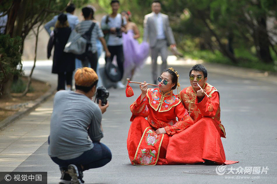 2017年10月9日,有著“海誓山盟之城”美譽(yù)的山東省青島市在初秋時(shí)節(jié)進(jìn)入婚紗拍攝旺季,穿古裝叼煙袋、五四時(shí)期打扮等各式衣裝齊亮相,在八大關(guān)景區(qū)留下人生最精彩的瞬間。