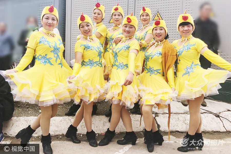 2017年10月13日,鄭州。提起廣場舞,大家都不陌生,公園、街頭、甚至擁堵的旅途中,總能看到廣場舞大媽的身影。10月13日,河南鄭州16名大媽身著“小雞”服飾,街頭實力上演萌萌噠“小雞舞”,引起眾人圍觀。