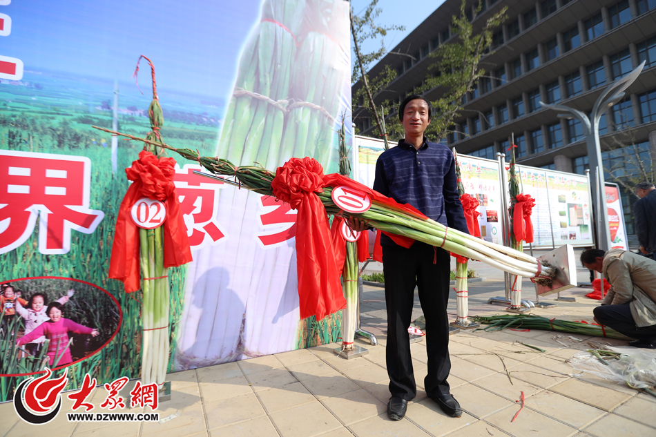 今天上午,中國(章丘)第十五屆大蔥文化節亮相于章丘區百脈現代農業示范園。擁有2600多年種植歷史的章丘大蔥,吸引了來自全國各地的“蔥絲”。現場,“狀元蔥”的PK十分激烈,47歲的繡惠農戶苗發勇帶來的大蔥高達2米51,最終奪魁。(亓翔 攝)