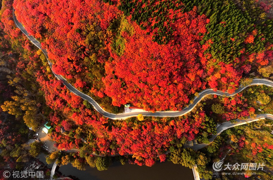 2017年10月30日,濟南南部山區紅葉谷的4000多畝黃櫨紅遍,形成全國罕見的巨型紅葉欣賞區。 紅葉谷生態旅游區位于山東省濟南市歷城區仲宮鎮錦繡川南,距離濟南市區33公里,南依五岳之首泰山。由于紅葉谷所處的南部山區是濟南泉水的主要涵養補給地且景區海拔在500米在左右,平均氣溫比市區低5攝氏度左右,山地小氣候較為明顯,景區的植被覆蓋率高達97%,主要是野生黃櫨,到深秋徹底變紅,景色極為壯觀。