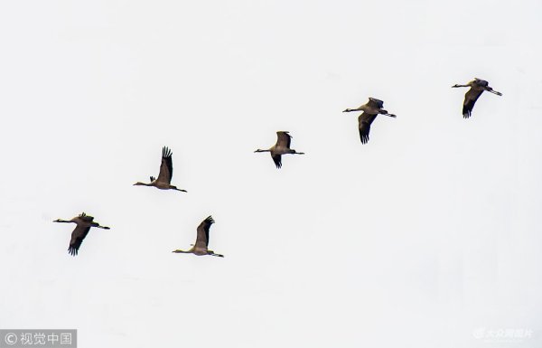 候鳥大軍過境青島 瀕危灰鶴現身膠州灣濕地