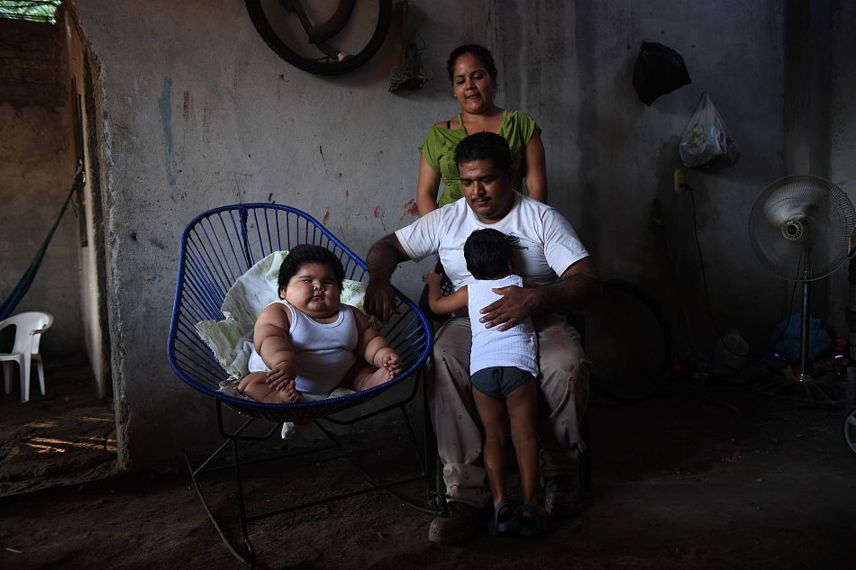 當地時間2017年11月8日,墨西哥特科曼市,Mario Gonzales的兒子10個月大的孩子Luis已經重達28公斤,他的生命由于肥胖和兒童糖尿病而時刻受到威脅。