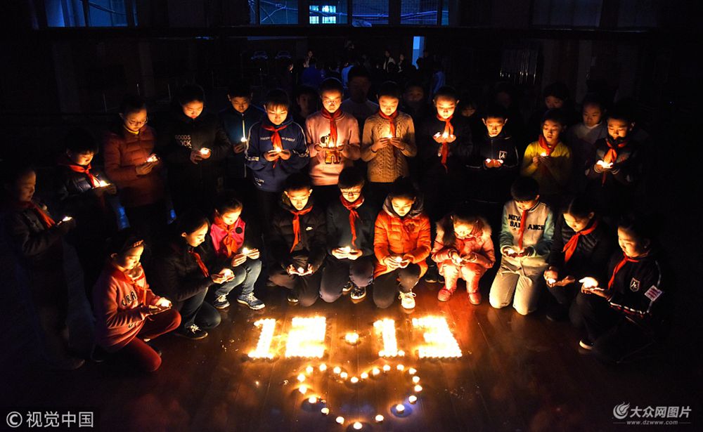 2017年12月12日晚,濟(jì)南,山東師大附小開展“為逝者緬懷 為生者祈! 和平燭光祭活動(dòng),為悼念南京大屠殺中30萬死難者。