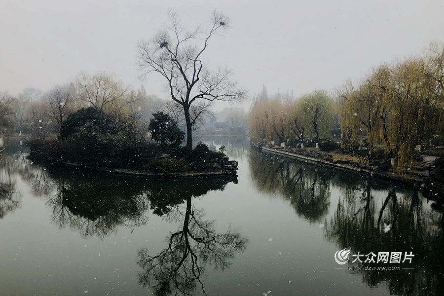 今天早晨,濟南迎來首場降雪,雪后的大明湖景色迷人。記者 孫博洋 攝影