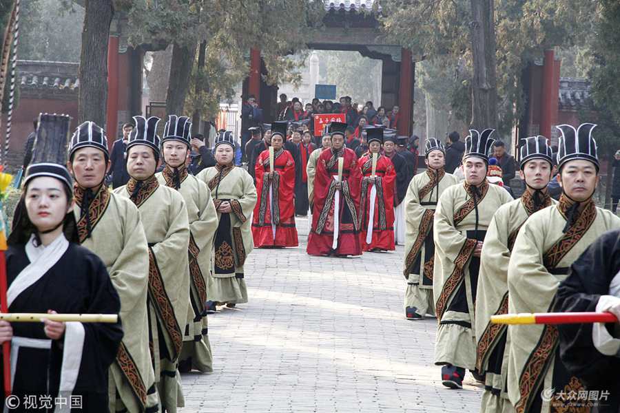 017年12月22日,丁酉年冬至祭孟大典在孟子故里山東鄒城孟廟舉行。海內(nèi)外孟氏宗親及社會(huì)各界人士等300余人參與祭祀儀式。 沙見(jiàn)龍(山東分社)/中新社/視覺(jué)中國(guó)