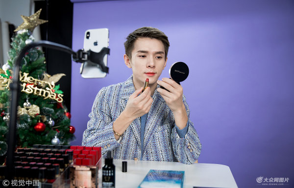 “口紅一哥”直播試口紅 從月薪三千到年入千萬