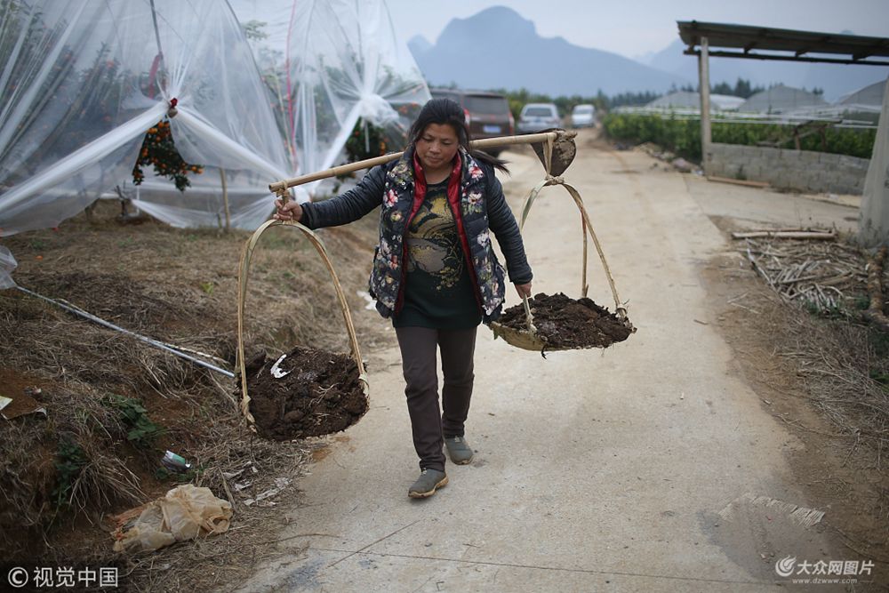 2018年1月16日,桂林,一次偶然的機會,陳小燕看中恭城一座深山的荒地。2013年,她放棄在縣城開賓館和飯店的生意,投資1500萬元,向當(dāng)?shù)剞r(nóng)民租地30年,用來開荒種果。如今,已種了1500畝的沙糖桔、柑橘等水果。視覺中國