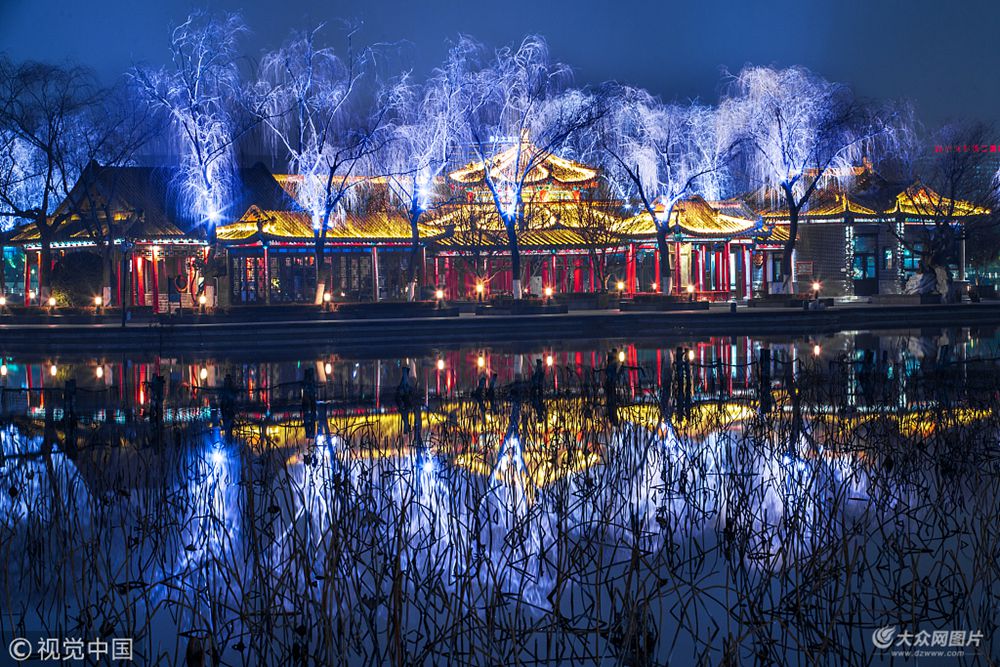 近日,大明湖景區“亮燈了”,各種燈光紛紛亮起,把大明湖景區裝扮得璀璨靚麗。