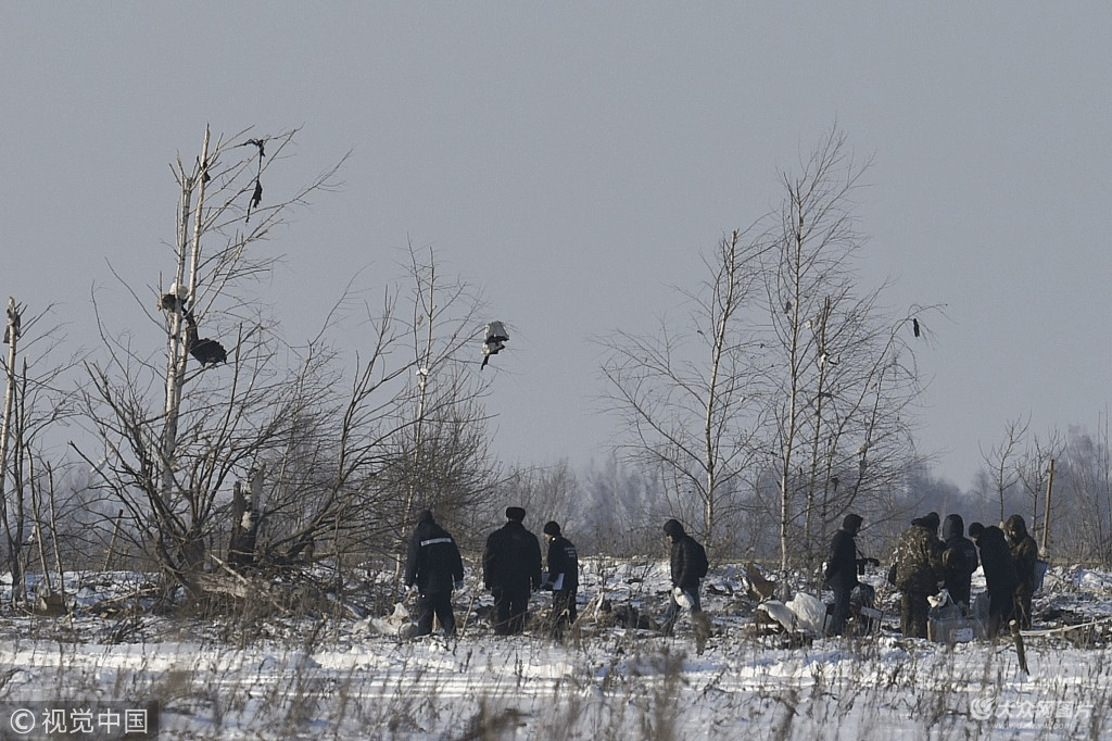 當地時間2018年2月12日,俄羅斯莫斯科地區,俄羅斯緊急情況部成員在墜機地點進行調查。2月11日在莫斯科郊外失事的安-148飛機的第2個黑匣子已被搜救人員找到。據俄羅斯衛星通訊社12日報道,搜尋行動總部的一名代表稱:“發現了第2個黑匣子,其狀況還可以。 ” 俄羅斯緊急情況部12日發布消息稱,在莫斯科州墜毀的安-148客機殘骸散落在半徑超過1公里的范圍內。俄羅斯衛生部長韋羅妮卡·斯克沃爾佐娃對媒體表示,在莫斯科郊外失事的安-148客機遇難者的搜尋工作將持續7天。