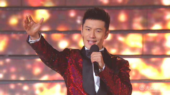 大眾網濟南2月15日訊  15日晚,在春晚山東分會場,來自內地以及香港、澳門、臺灣的青年演員黃曉明、鐘漢良、夏利奧、言承旭泰山腳下同唱《龍的傳人》。(大眾網——山東24小時客戶端記者 王磊)