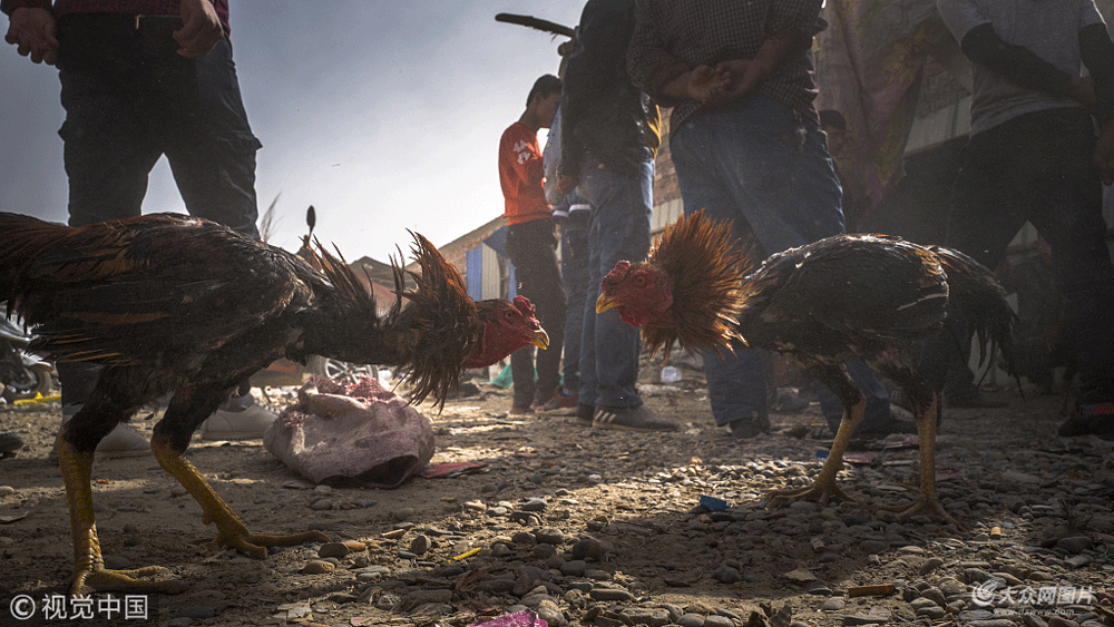 2018年3月25日,新疆和田農貿市場(巴扎),民間斗雞比賽。斗雞作為一種娛樂活動,早在春秋時就相當流行,傳承至唐代,風靡一時。
