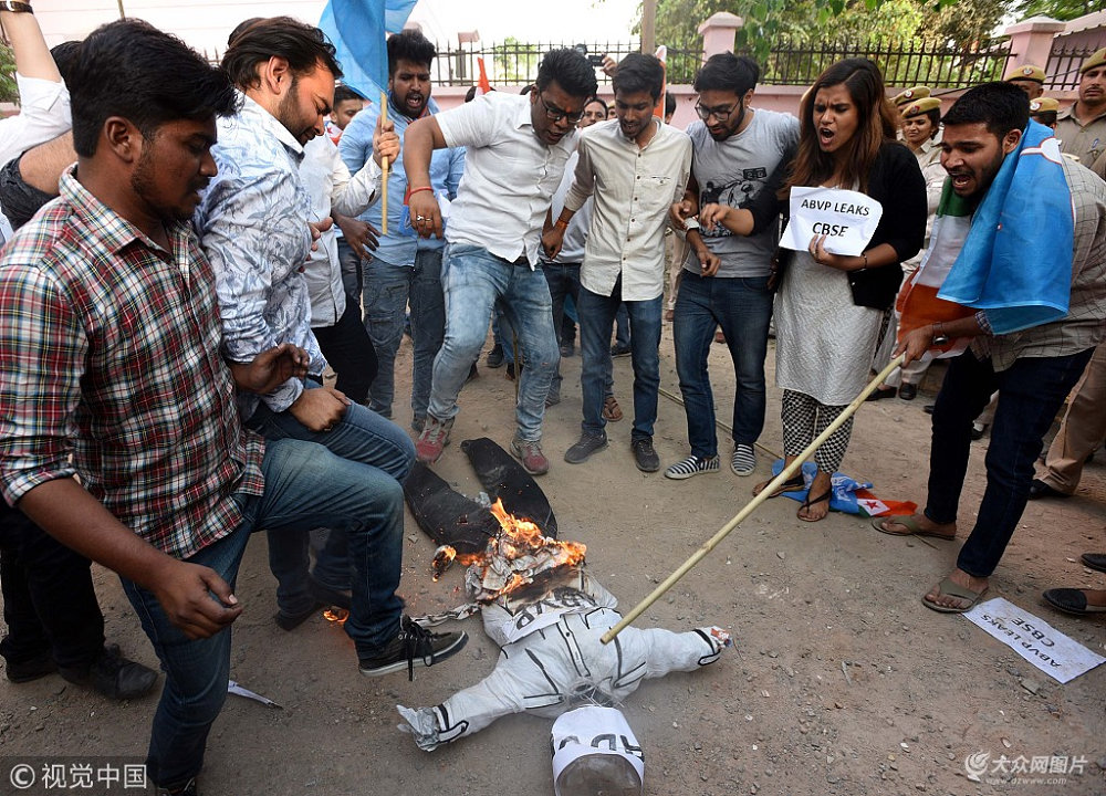 當地時間2018年3月31日, 印度新德里,印度“中考”、“高考”泄題,280萬人將重考引發民眾不滿,多地現抗議活動。