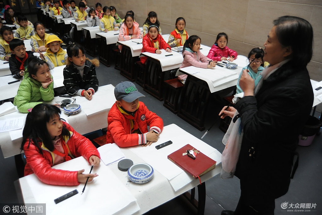 山東煙臺:小學生寫甲骨文書法 感受傳統文化魅力