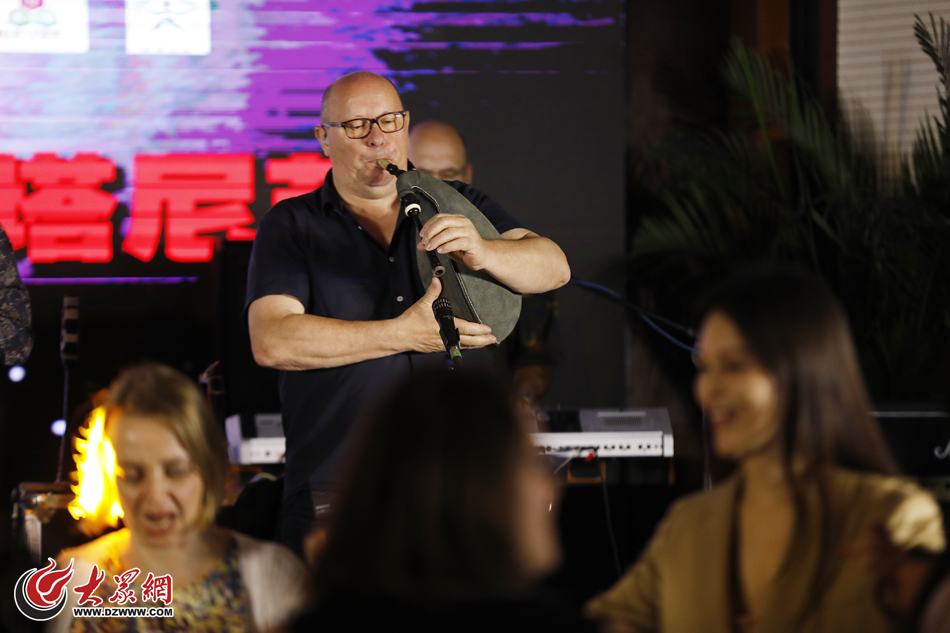 大眾網濟南5月25日訊 24日晚,2018布列塔尼節音樂會在山東新聞大廈成功舉辦。本次音樂會邀請了擁有40年歷史的法國知名樂隊SONERIEN DU,以及法國原創歌手戴亮(真名Christophe Hisquin)。隨著音樂的高潮迭起,許多現場觀眾不斷積極參與跳舞及互動,現場充滿法國風情。(大眾網、山東24小時記者 亓翔)