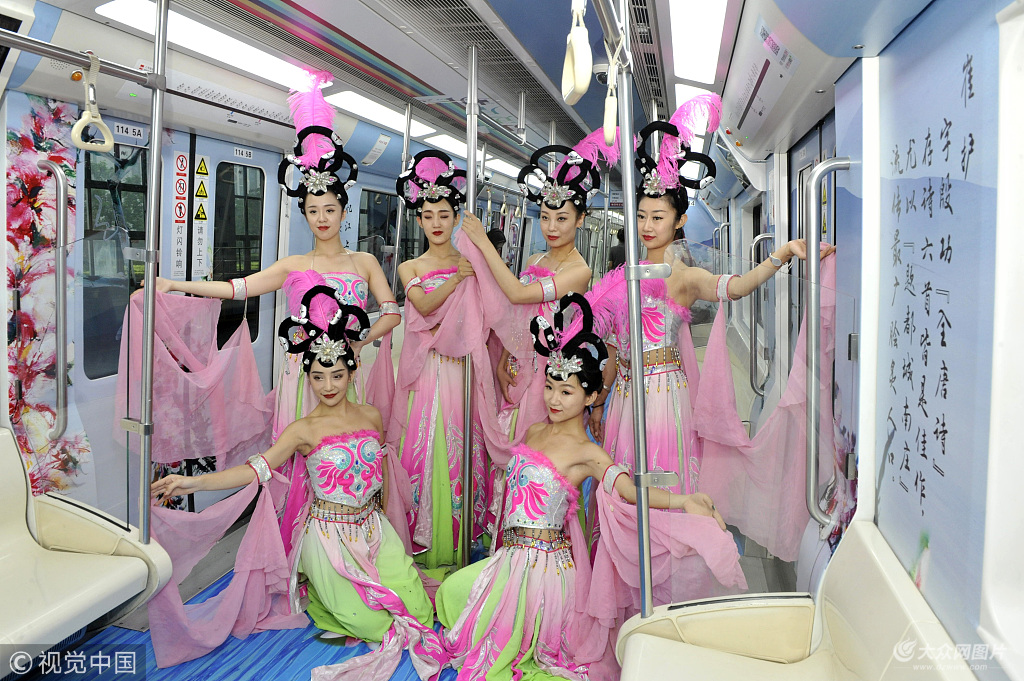 西安地鐵唐風詩韻文化專列首發 為市民營造"大唐盛景"