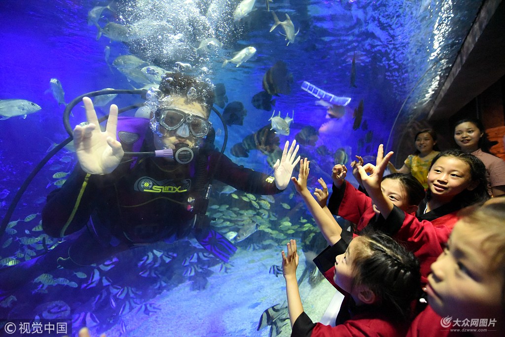 2018年7月14日,山東省臨沂市平邑縣開展“關(guān)愛留守兒童,暢游海洋世界”活動,32名父母不在身邊的孩子走進25攝氏度的“海洋世界”,觀賞海洋生物,感受“深海”溫度,真正體驗了暑假里的“清涼一下”。