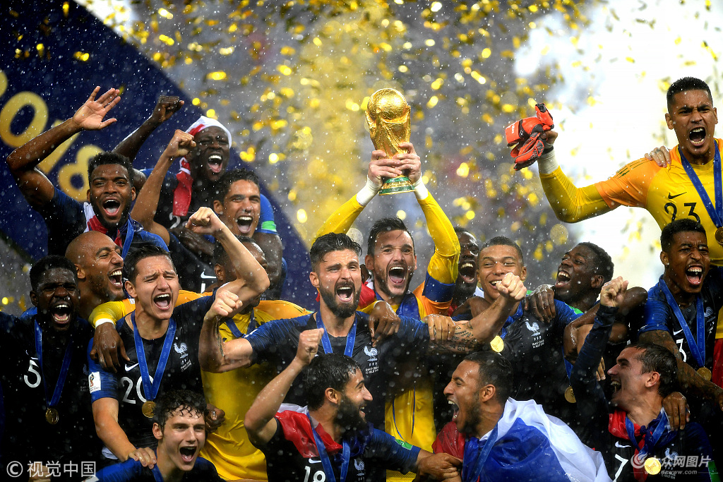北京時間7月15日晚23點,萬眾矚目的2018年世界杯決賽在莫斯科盧日尼基球場展開角逐,由法國對陣克羅地亞。上半場曼朱基奇自擺烏龍,佩里西奇扳平,隨法國隊通過VAR獲得點球,格列茲曼一蹴而就,下半場博格巴和姆巴佩擴大比分,洛里失誤送禮曼朱基奇破門。最終法國4-2戰(zhàn)勝克羅地亞,法國時隔20年再次奪得世界杯冠軍,克羅地亞也超越20年前的季軍,獲得隊史世界杯最佳戰(zhàn)績