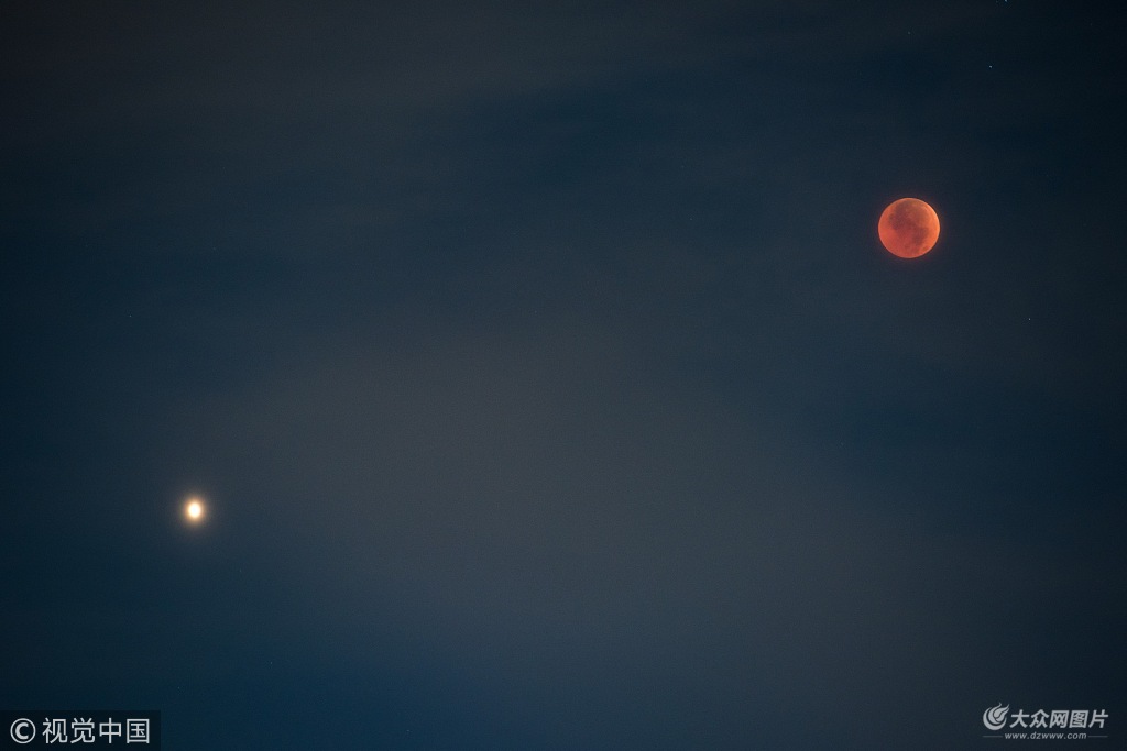2018年7月28日,火星與月全食同時亮相深圳夜空,遙相輝映,堪稱天象奇觀。