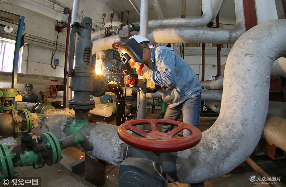2018年8月6日,在山東煙臺(tái)500供熱有限公司長(zhǎng)城供熱站,工作人員在焊接管網(wǎng)設(shè)備標(biāo)牌。三伏時(shí)節(jié),山東煙臺(tái)迎來供暖100天倒計(jì)時(shí),在煙臺(tái)500供熱有限公司各級(jí)供熱站和管網(wǎng)技改現(xiàn)場(chǎng),工作人員冒高溫排查管線,保養(yǎng)維修設(shè)備,確保今冬供暖質(zhì)量。據(jù)了解,山東省煙臺(tái)市每年11月初開始供暖試壓,11月15日正式供暖。