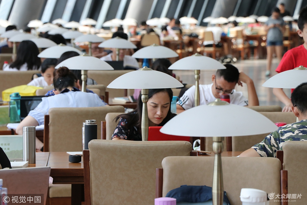 2108年8月11日,濟南市圖書館人氣很旺,很多市民來到這里讀書看報獲取知識。當日,濟南的最高氣溫達到了36℃,在這樣炎熱的天氣里,圖書館也成為了避暑納涼之地。