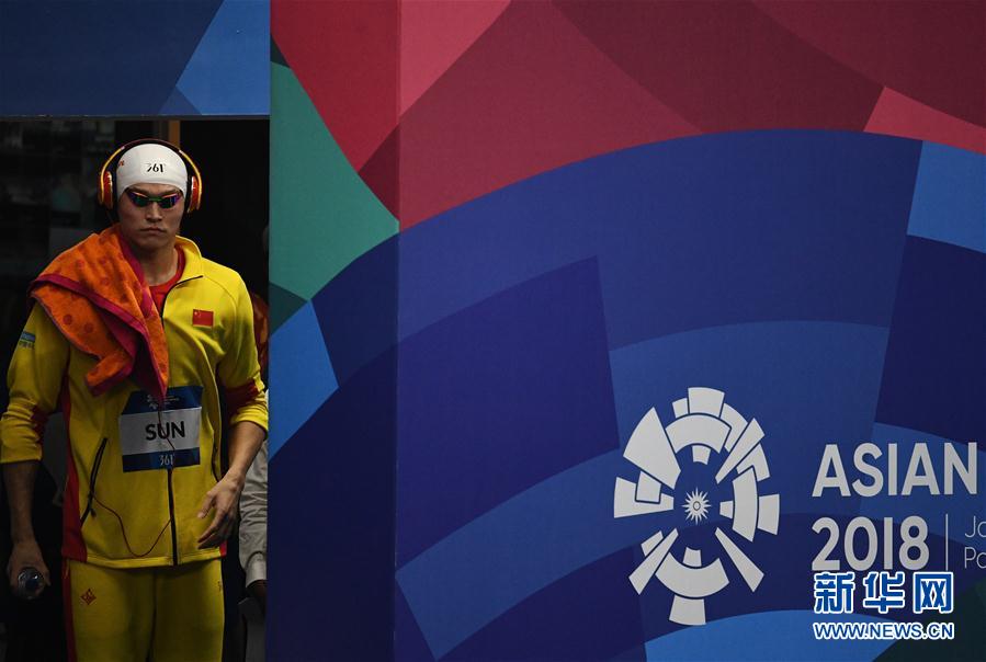 8月19日,中國選手孫楊在賽前入場。當日,在第18屆亞運會男子200米自由泳決賽中,中國選手孫楊以1分45秒43的成績奪冠。新華社記者李響攝