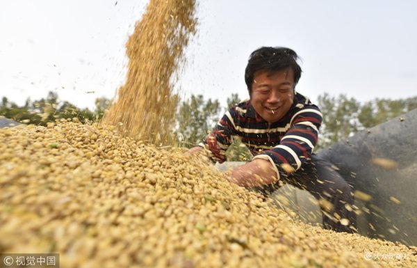 山東聊城:家庭農(nóng)場(chǎng)托管大豆收獲忙