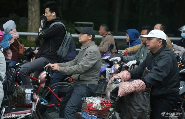 秋雨過(guò)后濟(jì)南降溫 市民“全副武裝”追趕上班路
