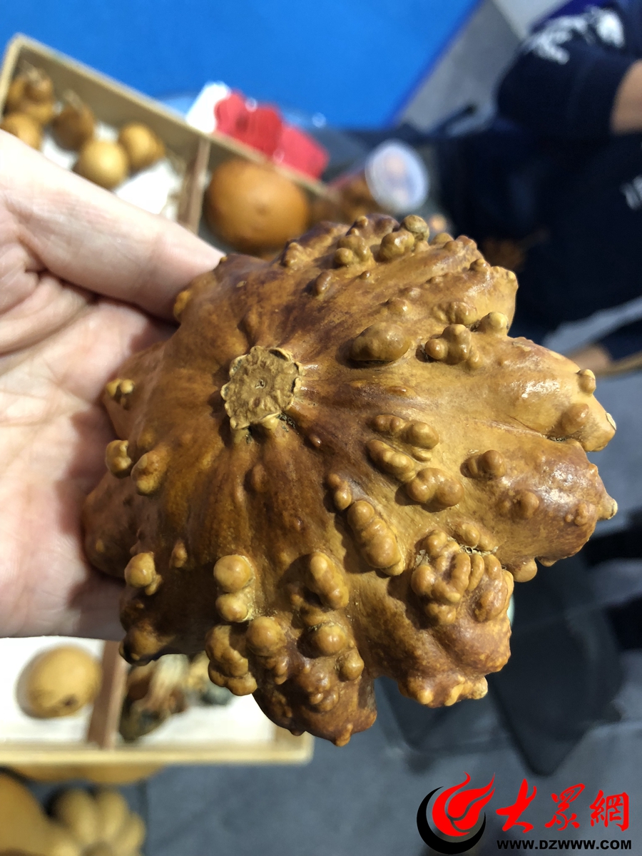 “它們其實是中國南瓜!但是它的價格是其它葫蘆價格的2倍!”來自棗莊滕州的工藝美術大師、市非遺繼承人趙虎告訴大眾網記者,疙瘩葫蘆”是蘭州老百姓對一種身上長滿“疙瘩”的葫蘆的通俗稱呼。這種‘疙瘩葫蘆’是‘南瓜屬’,并不是“葫蘆” ,其實是“中國南瓜”,它們的種子長得非常接近,一般人都會以為是南瓜種子。疙瘩葫蘆也有區別,有雞蛋疙瘩,佛手疙瘩,飛碟疙瘩,墨西哥疙瘩等。