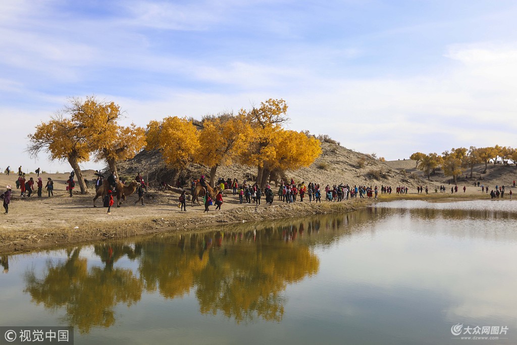 2018年10月13日,內(nèi)蒙古自治區(qū)阿拉善盟額濟(jì)納旗弱水胡楊林風(fēng)光旖旎,游人如織。
