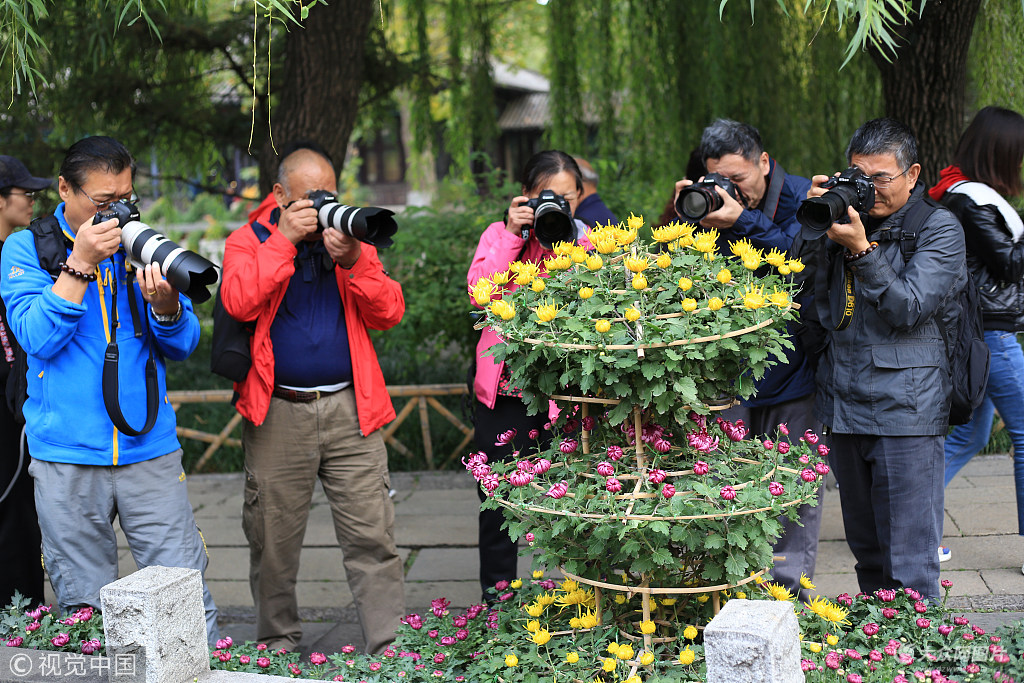 2018年10月21日,濟南,第39屆菊花展將拉開帷幕,園林藝術師傅正在緊張布景。