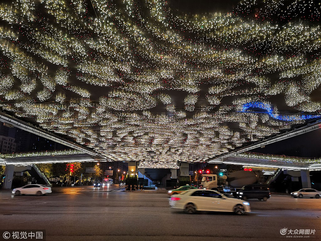 西安有座立交橋,白天看起來平平無奇,到晚上則變成高新最閃亮的畫卷。在正下方抬頭仰望,能看到光暈螺旋,在十字路口的街角遠觀,才能發現橋下變幻莫測的光暈組成的是一幅巨星的《星月夜》。