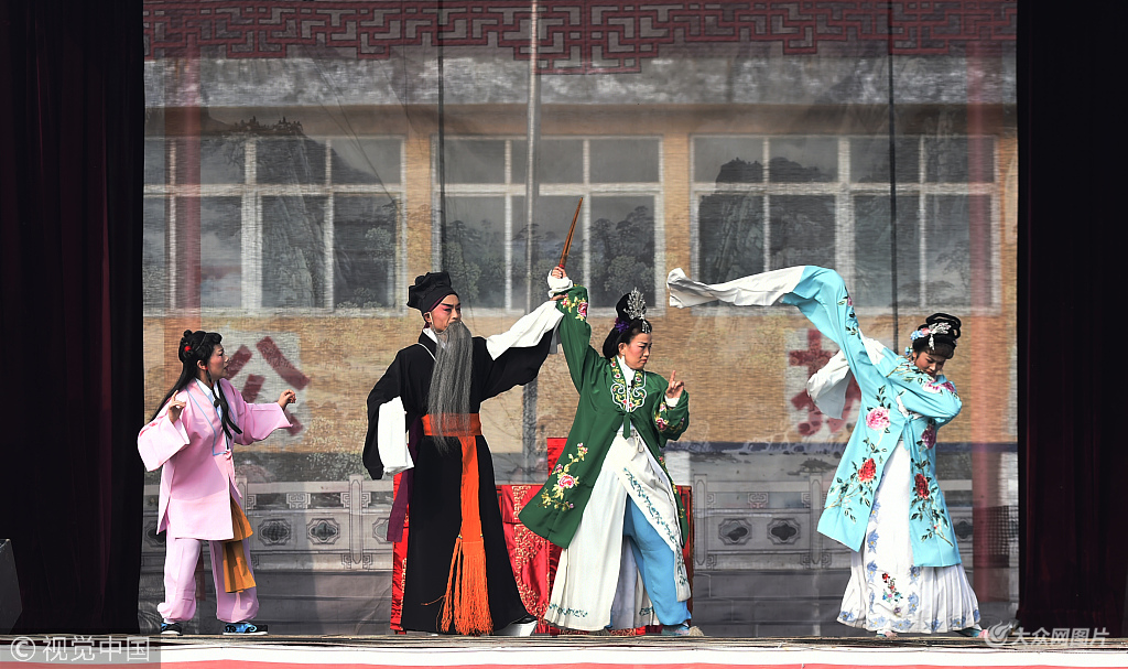 2018年11月14日,山東省鄒平市呂劇團在臨池鎮小臨池村為百姓演出傳統呂劇《龍鳳面》。