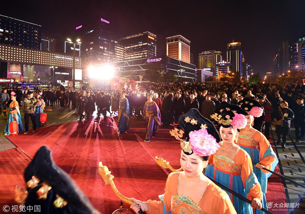 2018年11月17日,“2018中歐旅游年”閉幕式系列活動在陜西省西安市舉行。中外嘉賓在西安城墻南門廣場體驗仿唐入城儀式