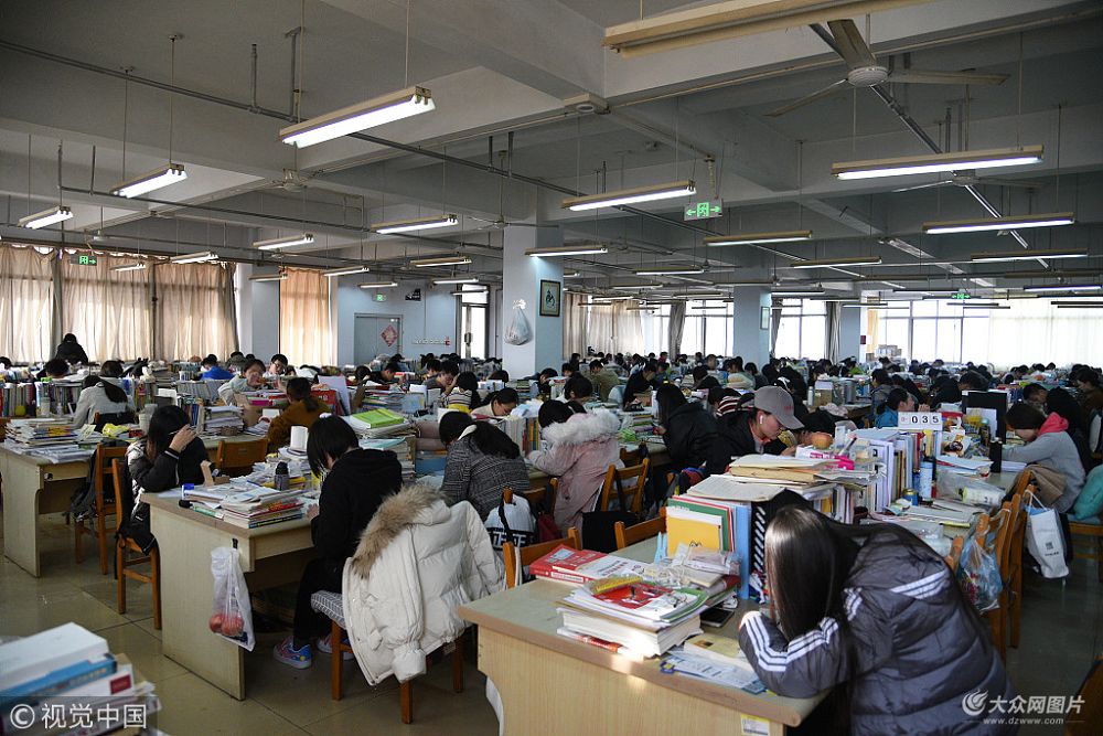 2018年11月18日,眼下距離2018年研究生考試只有30天的時間了。濱州市某高校考研自習室內(nèi)氛圍濃烈,學生扎堆猛讀。自習室內(nèi)座無虛席,座子上擺滿了考研用的復習資料。就連走廊外、樓梯里、墻角旁,都隨處可見為考研背書的學生。天氣寒冷,有學生便身裹毛毯,趴在暖氣片上背書。