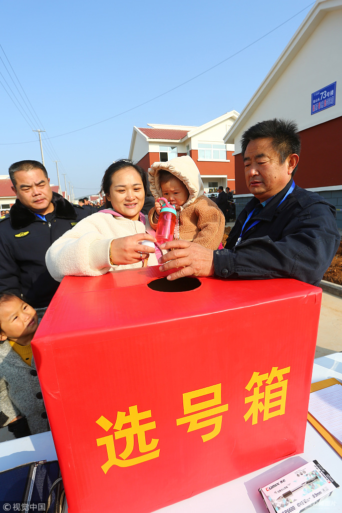 2018年11月24日,在山東省棗莊市山亭區山城街道駁山頭新村安置區,庫區群眾在辦理選房手續。
