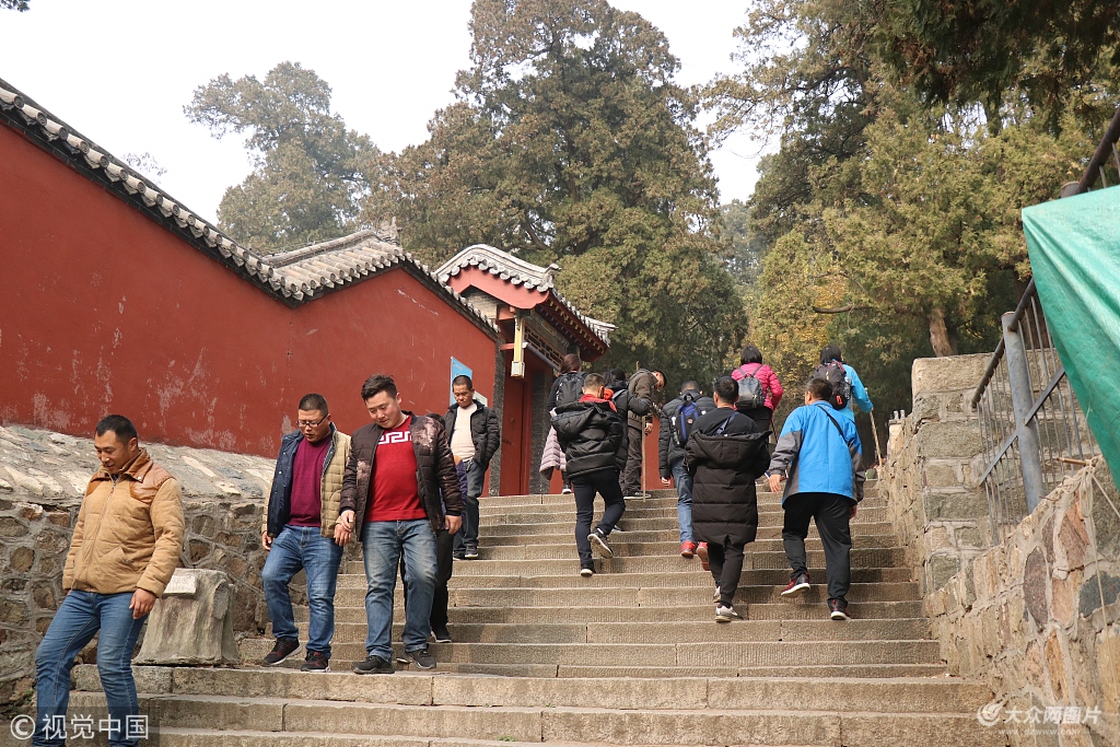 2018年11月29日,山東泰安。進入冬季,泰山打出“何必那么趕,等等你的靈魂”口號,登泰山游人紛紛放慢腳步,享受慢生活。