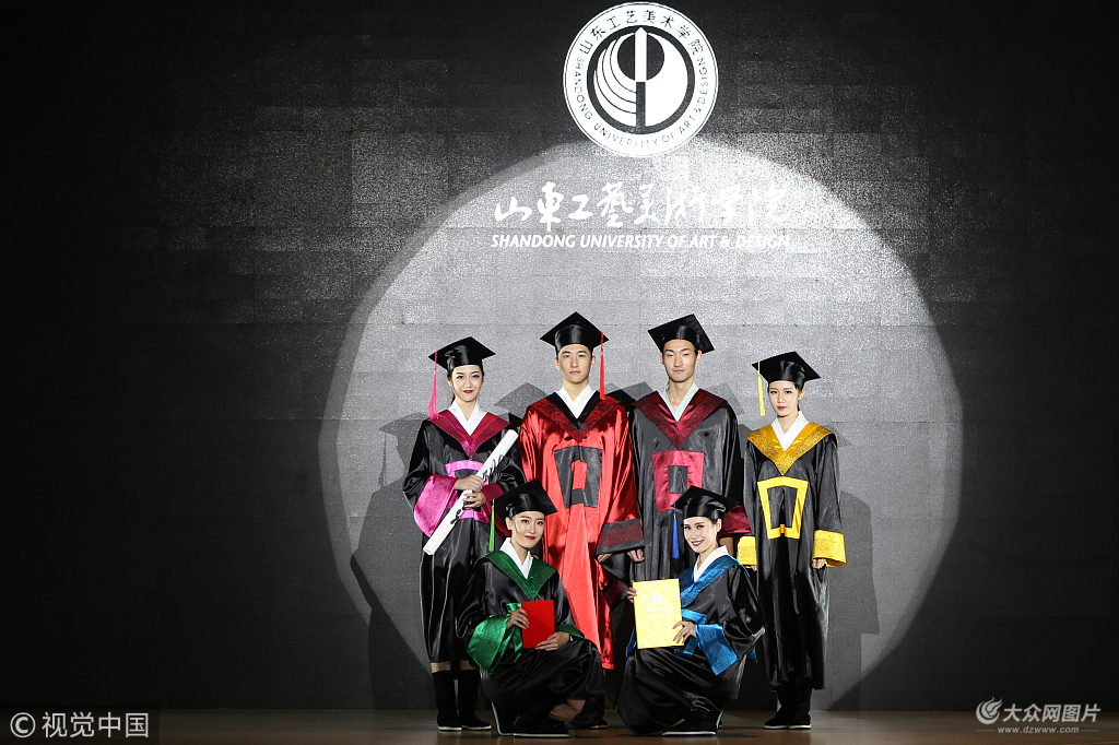2018年12月3日,濟南,一場集生活與藝術、時尚與應用于一體的服飾妝扮展演亮相山東美術館,由此拉開了“為人民而設計”——山東工藝美術學院藝術與設計作品展的帷幕。模特們裝扮成“大廚”、“服務員”、“禮儀”等角色穿梭在T臺上,展示出大學生對功能性服裝的設計創意。