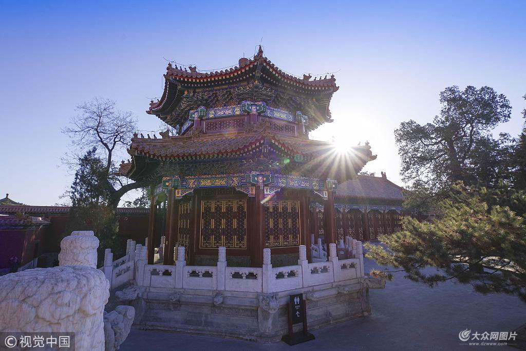 2018年12月6日,北京景山公園壽皇殿吸引游客參觀。壽皇殿建筑群始建于明代,清乾隆年間在景山正北重建,建筑仿照太廟規制而建,屬中國古代最高等級的建筑形式,是北京中軸線上除故宮外的第二大建筑群。從1955年開始一直由北京市少年宮使用,2016年4月起全面修繕后,于近日向公眾免費試運營開放。 賈天勇(攝影部)/中新社/視覺中國